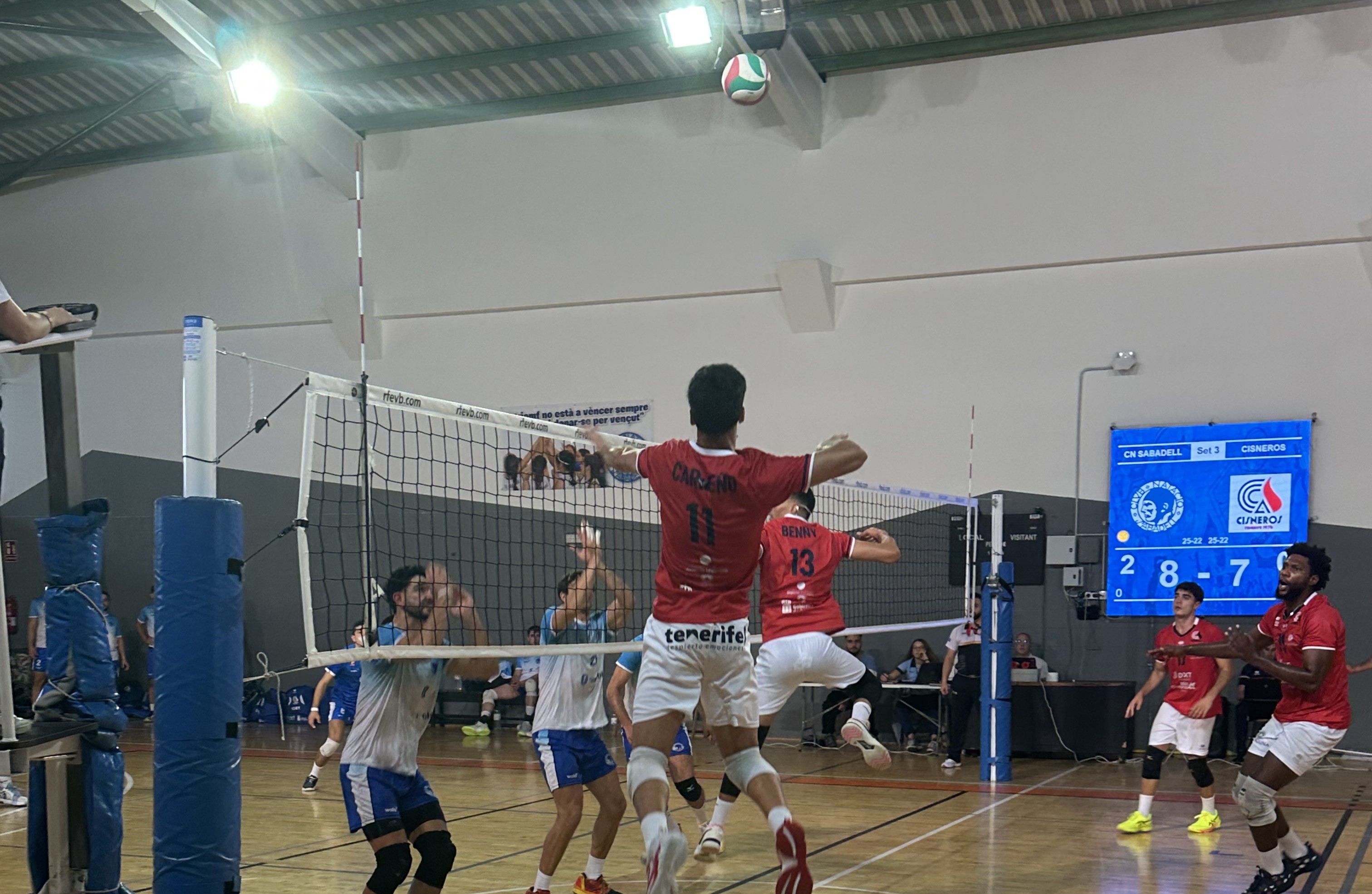 Victoria del CN Sabadell contra Cisneros La Laguna por 3-0 (25-22/25-22/25-22) en un partido donde los jugadores entrenados por Adrià Jiménez han jugado un partido muy serio ante el conjunto canario, al que han dado pocas opciones durante los 3 sets. En los dos primeros sets, los sabadellenses han hecho una buena combinación de juego de defensa y ataque y han ido siempre por delante en el marcador. En el tercer set, el Cisneros empezó por delante, pero los chicos entrenados por Adrià Jiménez dieron la vuelta al marcador, para acabar imponiéndose en el set.