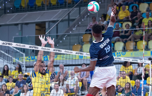 Desde los primeros compases, el conjunto amarillo impuso su ley en todas las facetas del juego. Los potentes saques de Nico Bruno, la efectividad ofensiva de Osmany Juantorena y la pegada de Walla Souza abrieron rápidamente brecha en el marcador (19-8). El Guaguas dominó con autoridad y cerró el primer set por un contundente 25-12, dejando claro quién manda en Canarias. El segundo set fue otro cantar.