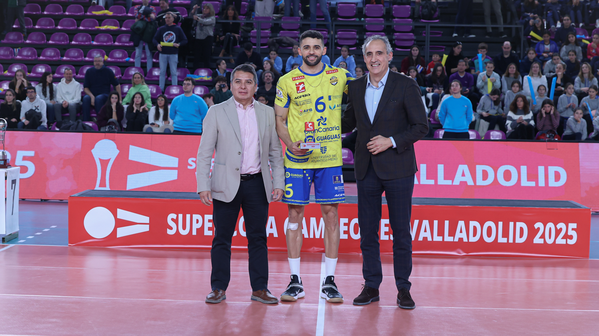 CV Guaguas logró imponerse este lunes, 29 de diciembre, a Grupo Herce Soria Voleibol en un Pabellón Pisuerga con más de 4000 asistentes (26-24/25-23/25-23). Los grancanarios consiguen en Valladolid una cuarta Supercopa que es, a su vez, su duodécimo título. Por su parte, los sorianos no pudieron materializar la revancha de 2023 y firman su segundo subcampeonato. El encuentro, arbitrado por Javier Pedrosa y Quin Ventura, llevó emoción y buen voleibol al entregadísimo público vallisoletano en el marco de la Copa de España 2025.