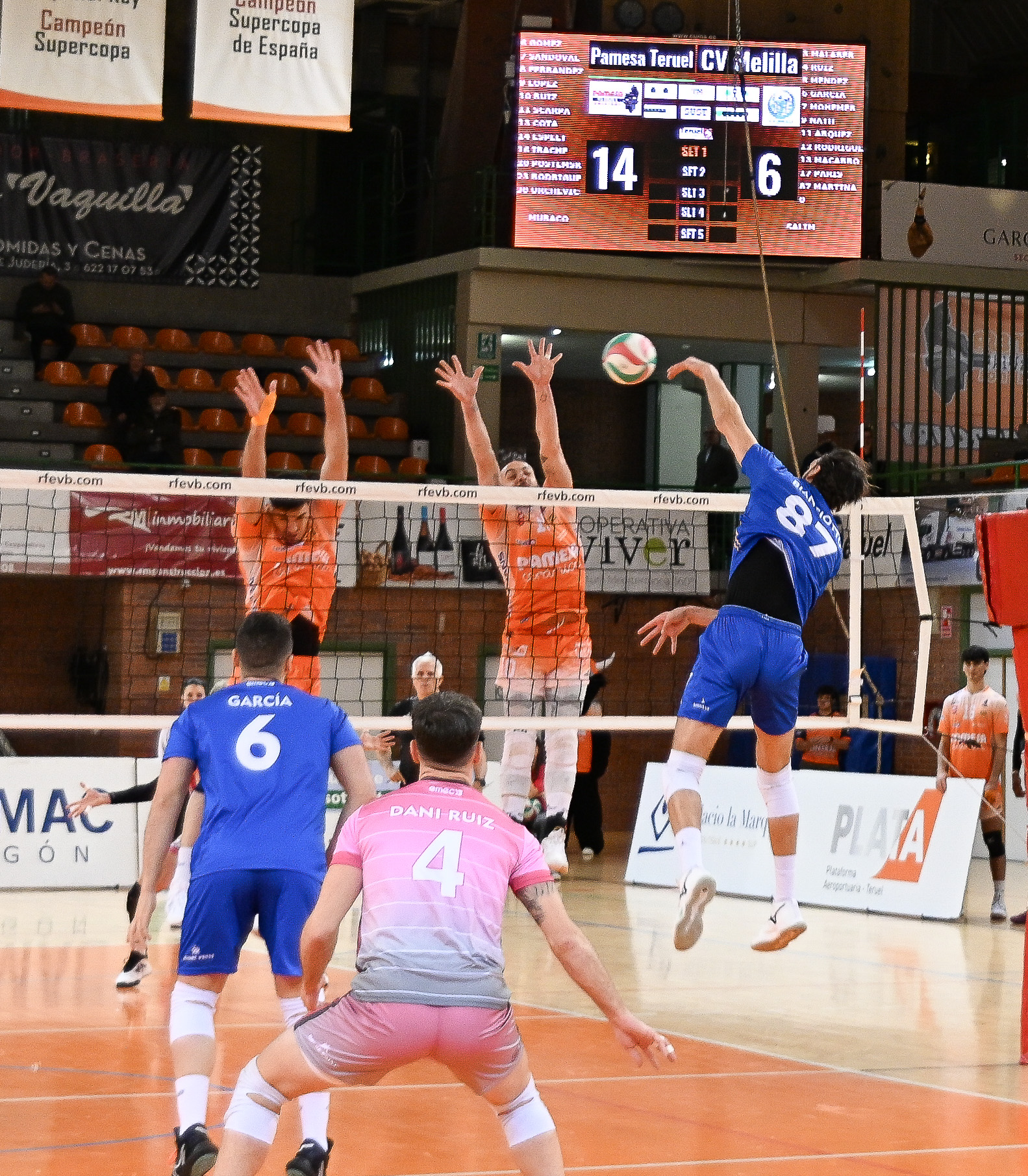 La acción de este ‘supersábado’ continuó con el Pamesa Teruel – CV Melilla, un partido que los norteafricanos remontaron tras ceder el primer set para sumar tres puntos valiosísimos a domicilio. Por 25-16 cedieron la primera manga antes de anotarse las tres siguientes por 24-26, 22-25 y 18-25, un resultado muy positivo, pero aún más tras la derrota de Menorca.