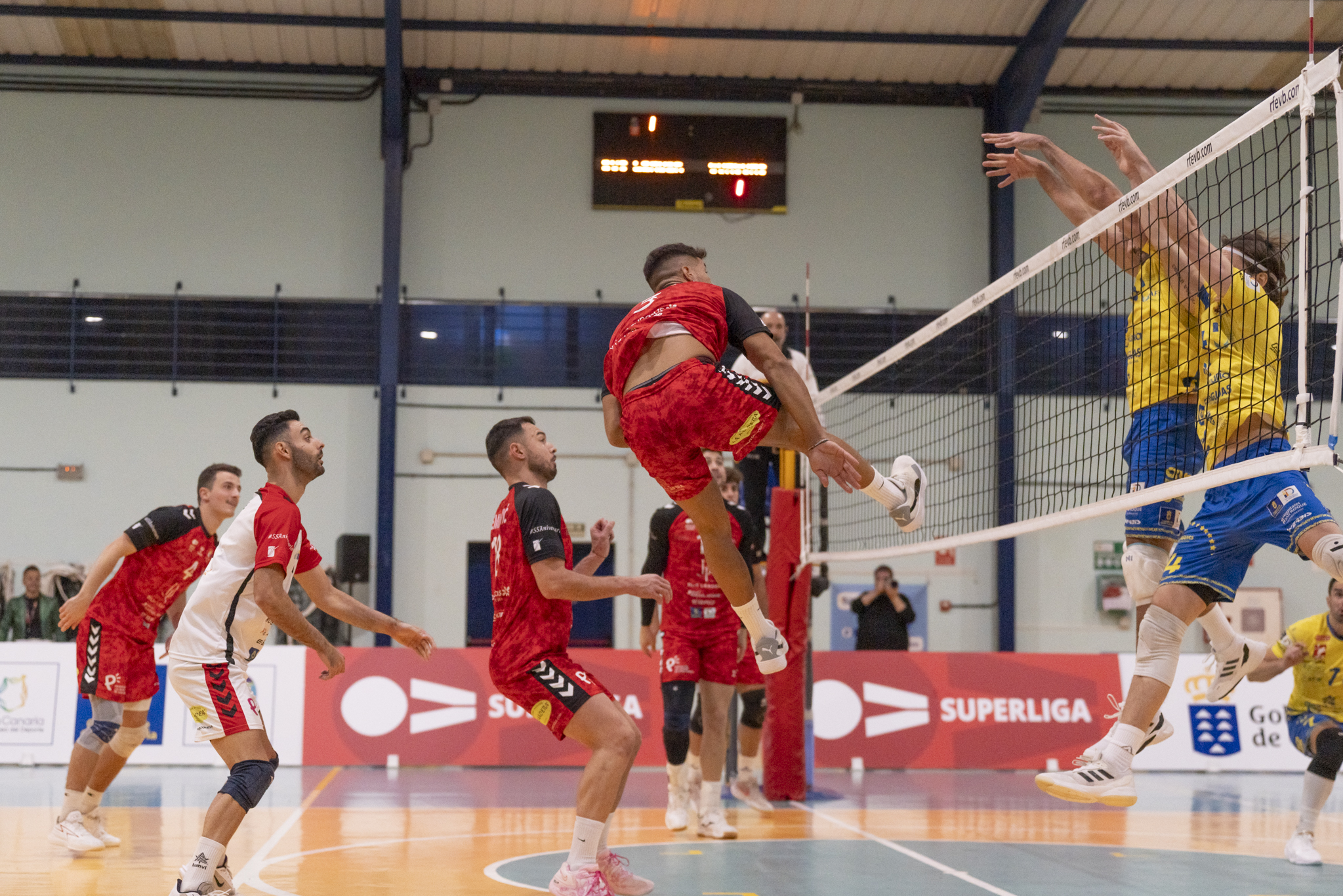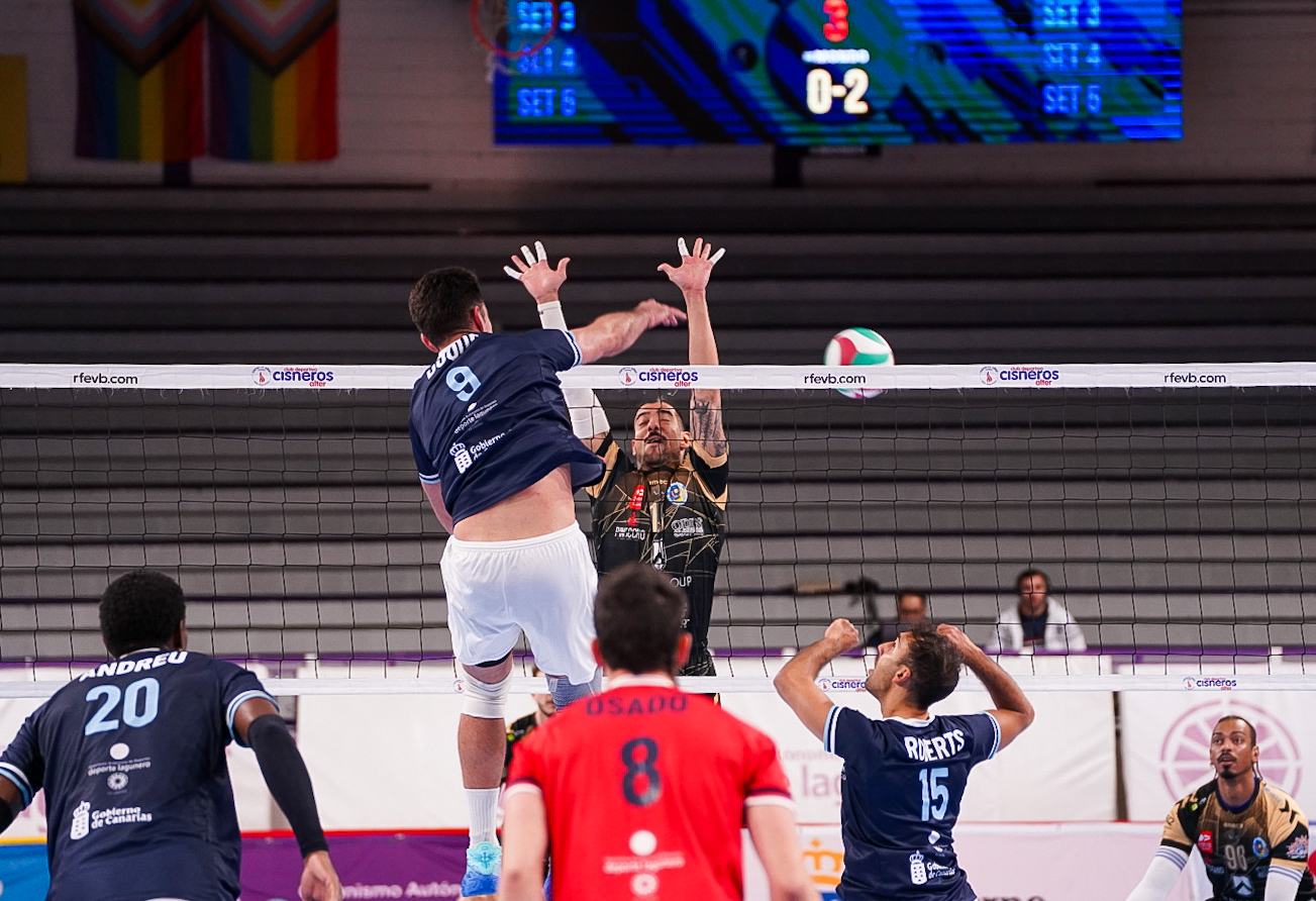 La jornada empezó con un verdadero partidazo entre Cisneros La Laguna y Servigroup Playas de Benidorm (3-2). Los visitantes consiguieron ganar las dos primeras mangas y ya se frotaban las manos con lo que olía a victoria a domicilio. Sin embargo, los chicharreros no dieron su brazo a torcer y pelearon con uñas y dientes para forzar el tie break. El impulso de la grada hizo el resto en el momento decisivo, cuando sellaron el partido con victoria para sacar dos puntos de un envite que parecía una derrota segura.