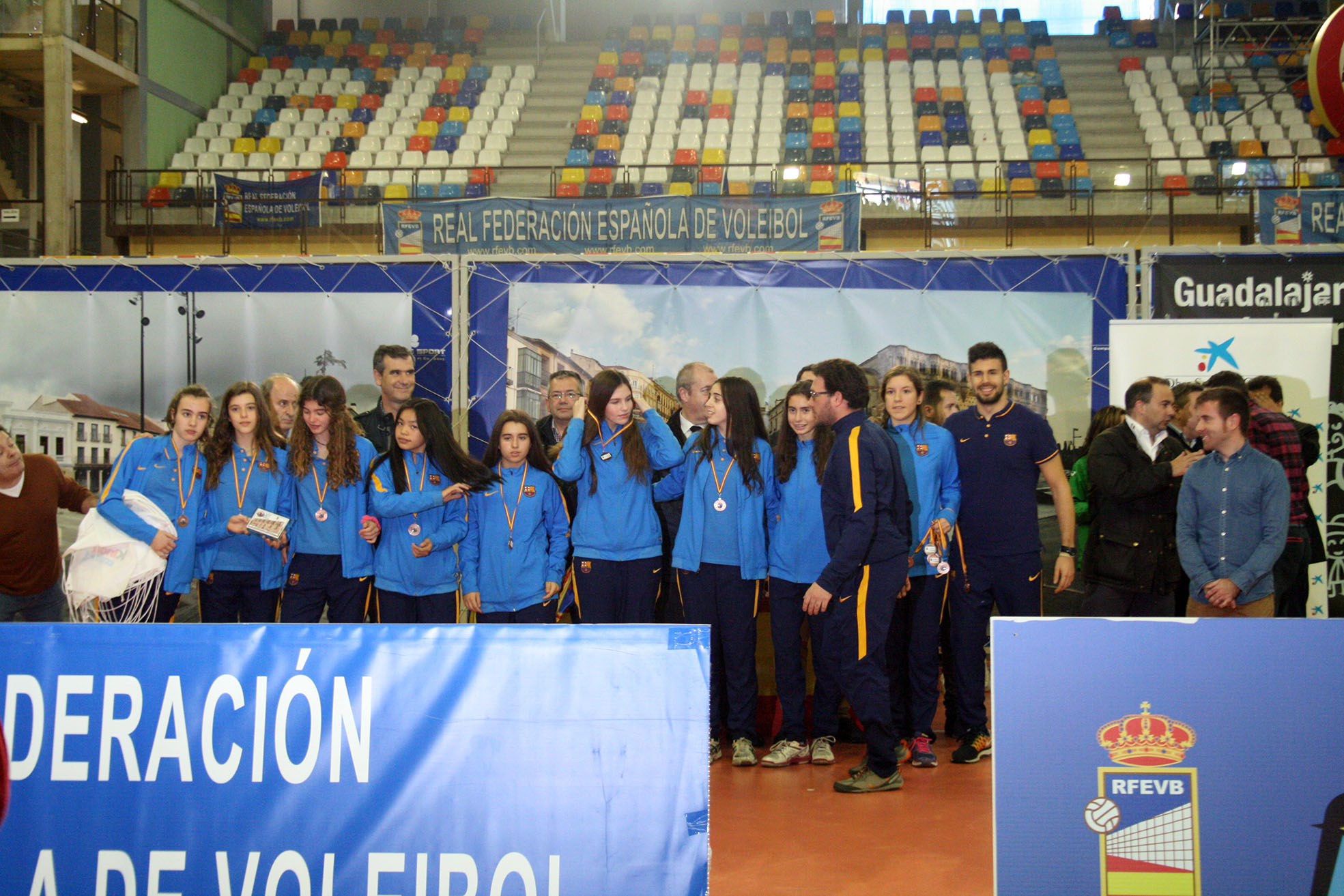 Mientras finalizaban las competiciones los equipos presentes pudieron confraternizar un poco más degustando una paella popular en las instalaciones del Multiusos alcarreño dando paso a una ceremonia de clausura y entrega de medallas con la que finalizó una espectacular edición de la Copa de España, convertida ya en un punto de referencia del voleibol nacional y en un torneo clave para el voleibol nacional de base.