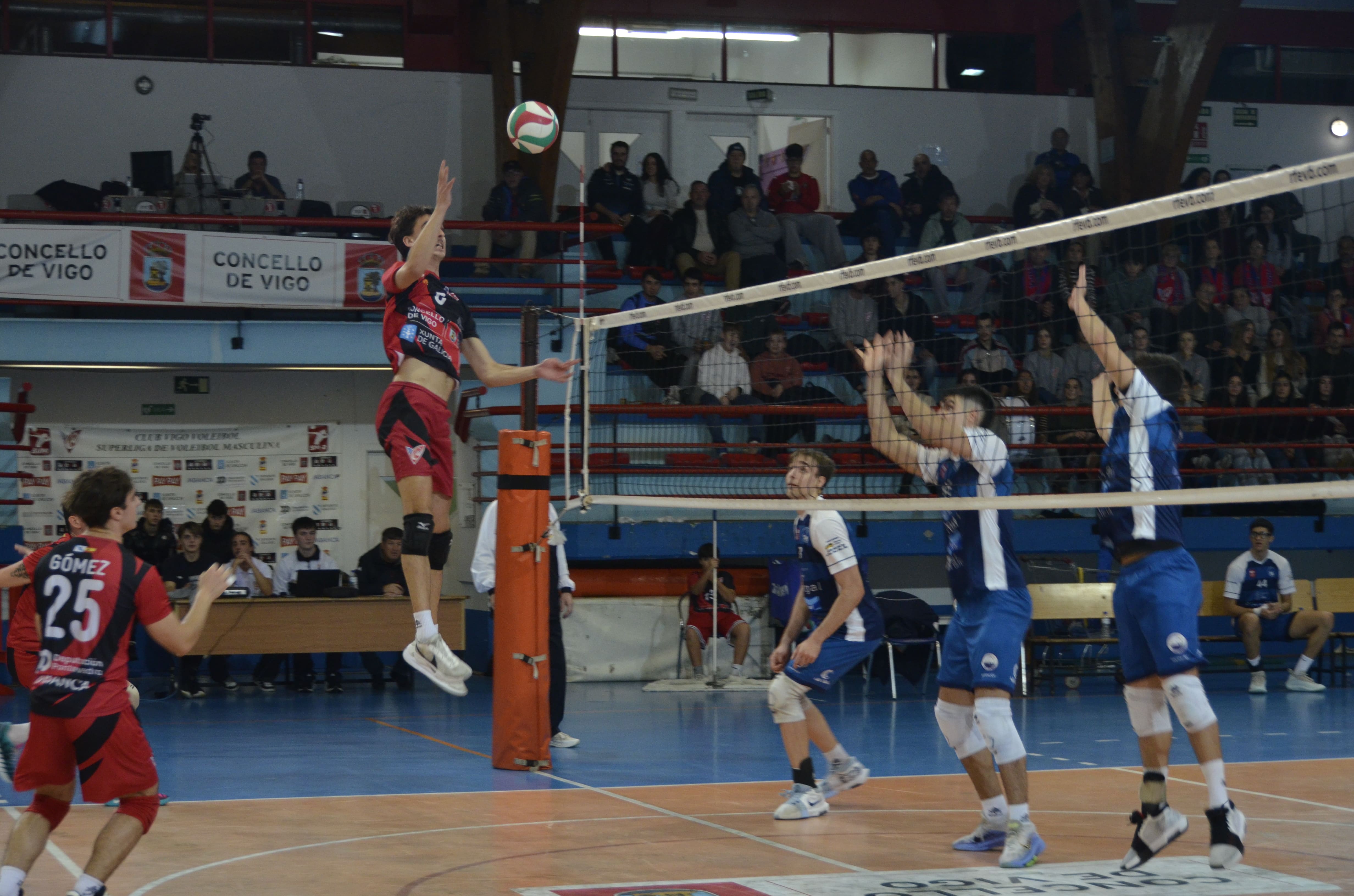 La jornada del Grupo A estuvo comprimida en la tarde del sábado y arrancó simultáneamente con tres partidos. Uno de ellos era uno de los cruciales de cara a la Copa Príncipe y vio como sus dos contrincantes, Vigo y Rotogal Boiro, disminuían sus opciones de forma drástica. En el caso de los vigueses, dependían de los resultados en otros partidos, pues la semana que viene descansan y esta era su última oportunidad de sumar. Respecto a los de Boiro, una victoria contundente los hubiera acercado a los puestos de clasificación. No fue así. Vigo se llevó el partido 3-2 y Boiro, aunque todavía podría obrar el milagro, no depende de sí mismo. En la otra cara de la moneda está Textil Santanderina, que con su victoria 3-0 frente a CID Jovellanos asegura su viaje a Pinto en enero. Intasa San Sadurniño venció 3-1 a Arenal Emevé y está a milímetros de la meta de la Copa Príncipe. Matemáticamente, solo una derrota a cero y la ayuda del cociente de sets podría darle el pase a un Boiro que necesita ganar la semana próxima. Por su parte, Universidad de Valladolid logró escapar de los puestos de descenso tras un apretado 3-2 contra CV Dumbría. Además, Suac Canarias continúa construyendo su remontada, ladrillo a ladrillo, con un 0-3 frente a Galdakao Boleibol Taldea que los coloca en quinta posición.
