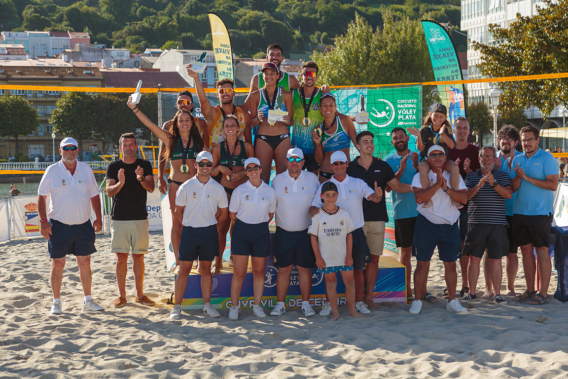 Cedeira acogió este fin de semana la quinta prueba del Circuito Nacional de Vóley Playa 2023. Desde el pasado viernes, primer día de competición, hasta la tarde del domingo 6 de agosto, la Playa de la Magdalena se convirtió en el escenario idóneo para emocionantes batallas de vóley playa en territorio gallego. Las parejas formadas por Nazaret Florián y Carolina Fernández Da Silva, en categoría femenina, y José Osado y Ángel Rodríguez, en categoría masculina, se alzaron campeones de esta prueba de dos estrellas del #CNVP2023.