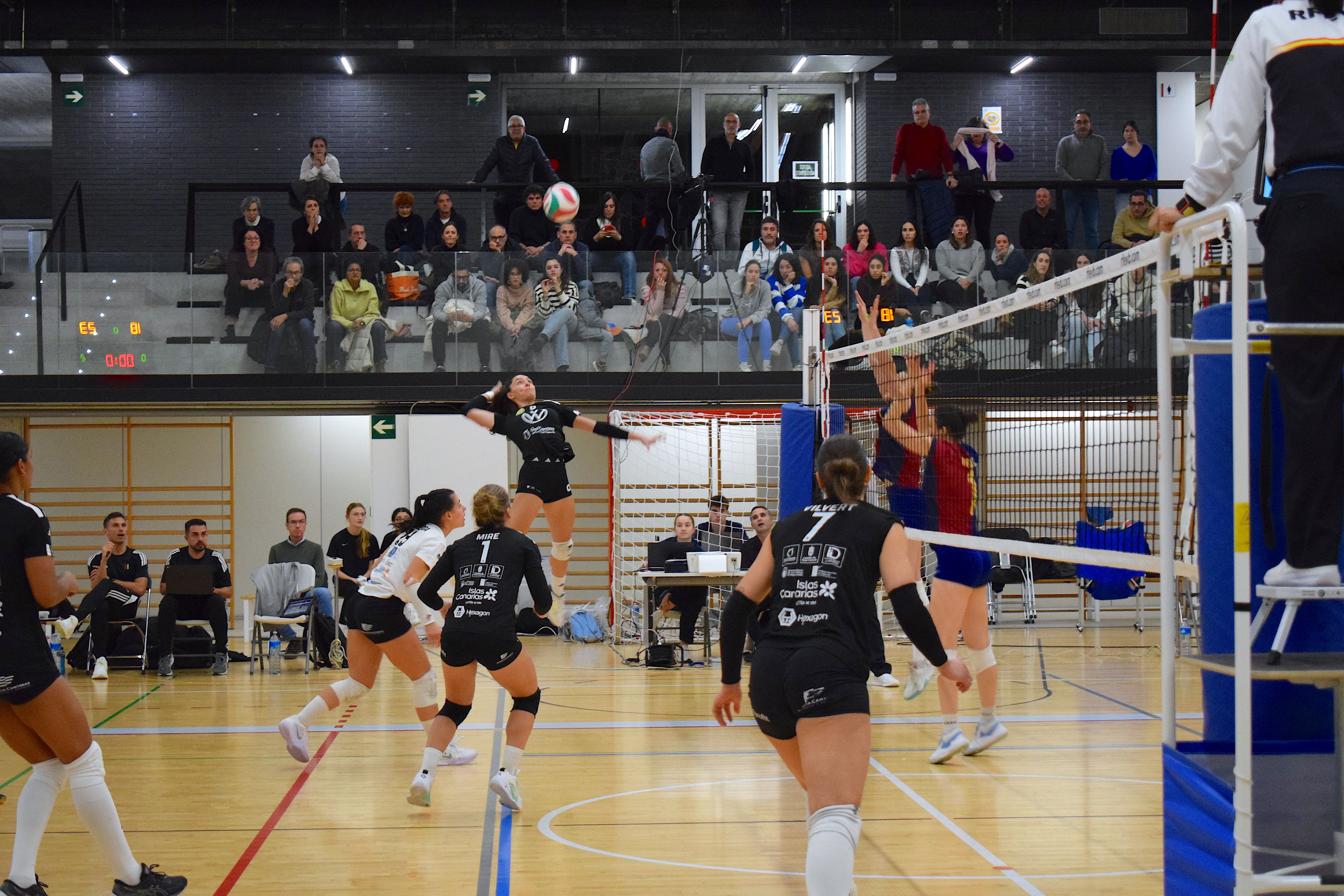 El líder Heidelberg Volkswagen asaltó la pista del colista Barça CVB para vencer por la vía rápida. Las jugadoras de Santi Guerra se hicieron fuertes en bloqueo para controlar el primer set desde su arranque, en un guion que se mantendría en el segundo set. El conjunto de Miguel Fuente mejoraría en el comienzo del tercer set, disponiendo de sus primeras ventajas, pero la solidez de las grancanarias las permitió reponerse y conquistar un triunfo que las lleva a cerrar la primera vuelta con pleno de triunfos.